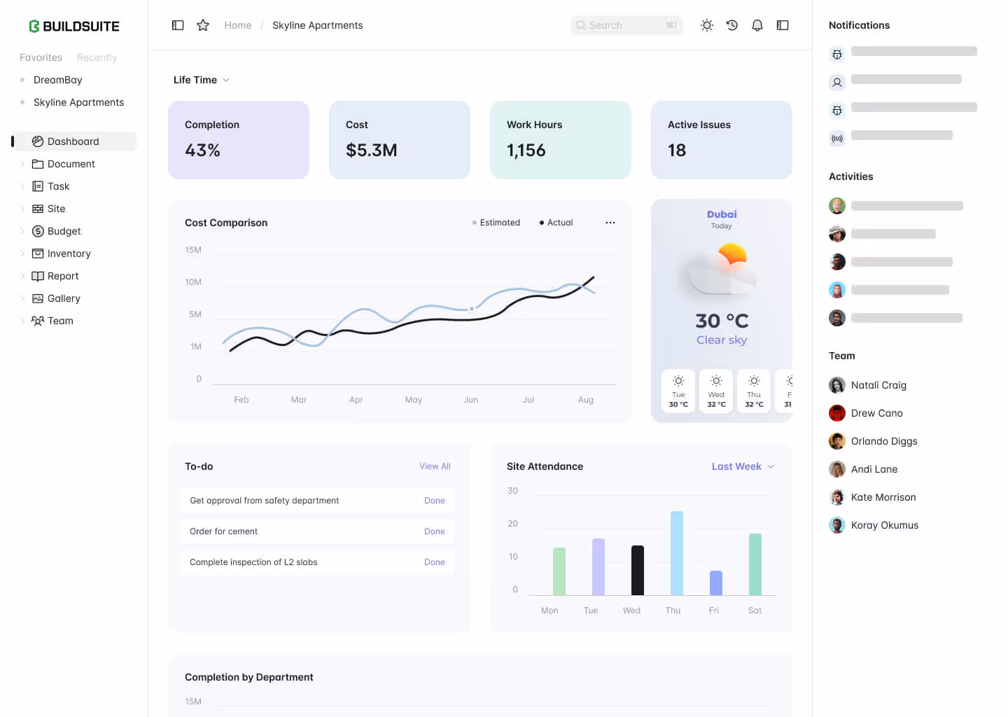 BuildSuite is a construction ERP and project management platform that simplifies planning, execution, and site operations for contractors and builders.